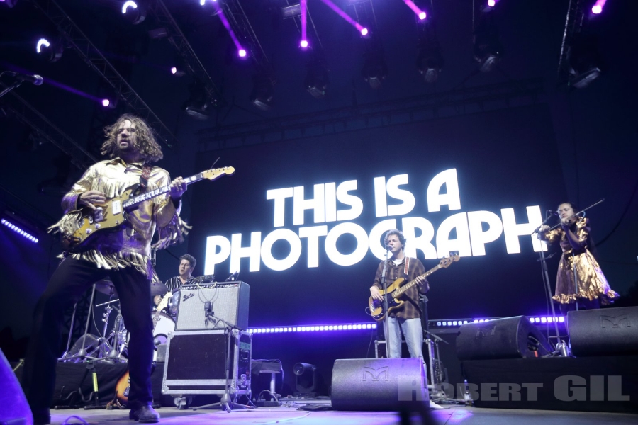 Kevin Morby et ses six musiciens, dont une violoniste et un saxophoniste, arrivent tranquillement sur scène, et passent un bon moment à faire des réglages. Finalement, les mots « THIS IS A PHOTOGRAPH » s'affichent en grand et blanc sur fond noir et toute la joyeuse bande débute par le morceau éponyme du dernier album. Le groupe fait la part belle à cet album et à chacun des trois autres disques de l'artiste américain, en les jouant simplement dans l'ordre inverse de leur parution, comme un aperçu de sa discographie, en remontant dans le temps. Et cela fonctionne parfaitement : le show est équilibré et l'énergie et l'alchimie entre les musiciens est communicative. Le batteur et le guitariste Cyrus Gengras semblent se charrier, tous sourires, et Kevin Morby, vêtu d'une veste dorée à franges du plus bel effet, finit en grande forme son show en se jetant dans le public afin de célébrer la fin de sa tournée de la plus belle des manières, sur cette île aux airs de vacances.