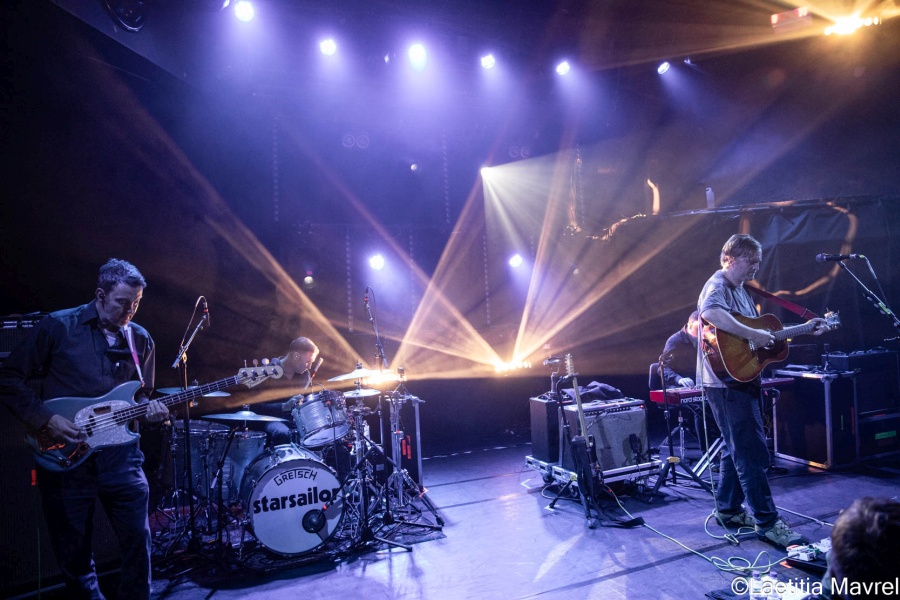 Silence Is Easy. Accompagnés sur scène d'un second guitariste, les morceaux du répertoire de Starsailor auxquels nous pouvions reprocher une certaine linéarité gagnent en personnalité, les guitares prenant le pas sur les effets de claviers beaucoup trop présents sur disque. Ce qui nous ramène automatiquement vingt cinq en arrière est la voix de James Walsh. Ce timbre si particulier, très chaud, qui a gagné en profondeur avec les années et qui s'est définitivement séparé du côté un peu strident qu'il pouvait avoir au tout début de leur carrière. Un sacré contraste avec le look de « Monsieur tout le monde » de James, qui nous semble sorti d'une nuit passée en tour bus avec ses vêtements froissés et sa coupe de cheveux plus qu'incertaine. C'est là toute la magie de Starsailor, et leur authenticité transforme un répertoire parfois quelconque en série de hits en puissance. L'alchimie entre les membres du groupe opérant toujours, l'ambiance se veut très décontractée, on prend donc son temps pour s'accorder ou pour échanger quelques blagues mais surtout, c'est un James très loquace qui ravira son public, beaucoup de présents ayant fait le déplacement depuis la province, cette soirée étant l'unique date française de la tournée. Ce qu'il reconnaitra humblement, en promettant d'élargir leur parcours pour la prochaine fois.
