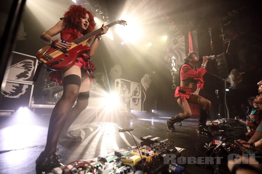 Des lanternes montent dans le ciel place de la République, et à l'Alhambra c'est le retour des Nova Twins, ovnis de la scène punk-rock-métal britannique avec un penchant non-dissimulé pour Paris. Techniquement le septième concert de leur histoire dans la capitale ce soir, en comptant le Café de la Danse en 2022, Rock en Seine l'année suivante, et bien sûr les quatre premières parties des ultimes concerts de Shaka Ponk à l'Accor Arena en novembre dernier. La très probable raison d'un public extrêmement mélangé, entre rockeurs cinquantenaires venus entre potes ou avec leur junior désormais adulte, jeunes en harnais de cuir et maquillage queer-emo fièrement affiché, ainsi qu'une part non-négligeable de « personnes de couleur » si on compare aux statistiques habituelles en concert de de rock.