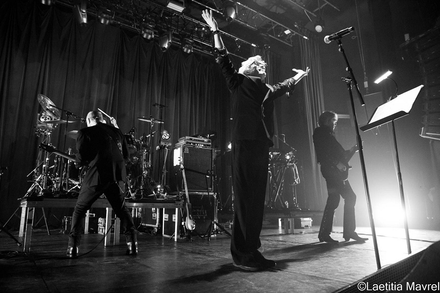 Quand les membres du groupe montent sur scène, tous très classes en costumes noirs, et pour la moitié avec des lunettes de soleil, on remarque que leur saxophoniste, Mars Williams, disparu en 2023, n'a pas été remplacé. En 2025, le groupe tourne donc autour des frères Butler au chant et à la basse depuis 1977, et d'Amanda Kramer qui n'a rejoint le groupe aux claviers qu'en 2002 mais qui fait maintenant office de vétéran. Même chose pour Rich Good qui tient la guitare depuis seulement seize ans ! A la batterie, Zack Alford, arrivé en 2021, fait office de nouveau venu, et que dire de Peter DiStefano qui vient de les rejoindre ? Il y a un an, il disait pourtant vouloir profiter de sa retraite après la dernière tournée de Porno For Pyro, mais cela se voit qu'il est ravi d'être là !