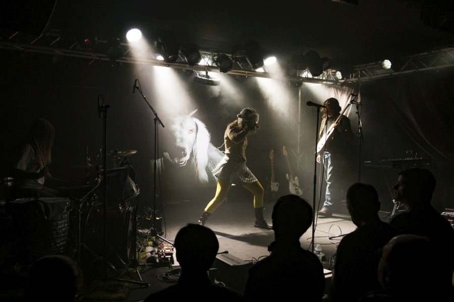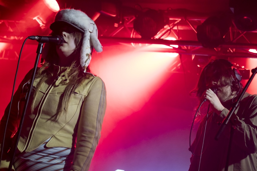 Silver Gore arrivent en trio, Ava Gore se consacre exclusivement au chant et à l'animation tandis qu'Ethan P. Flynn alterne entre guitare et claviers. Ils sont épaulés par une batteuse qui donne une colonne vertébrale au groupe. Sur disque, le duo cultive la finesse, les détails étranges, le "tiens, c'est quoi ce truc ?". En live, ça s'épaissit, ça pulse, ça devient chanson, avec un peu de nerf, un peu d'air, et juste assez de chaos pour rappeler que ça peut dérailler à tout moment. Ava occupe l'espace avec une jubilation et un plaisir communicatif tandis qu'Ethan, lunettes noires et guitare trop basse, oscille entre excentricité involontaire et maîtrise artisanale. Ce mélange de génie relâché et de flottaison poétique pourrait agacer et pourtant tout cela fonctionne à merveille.