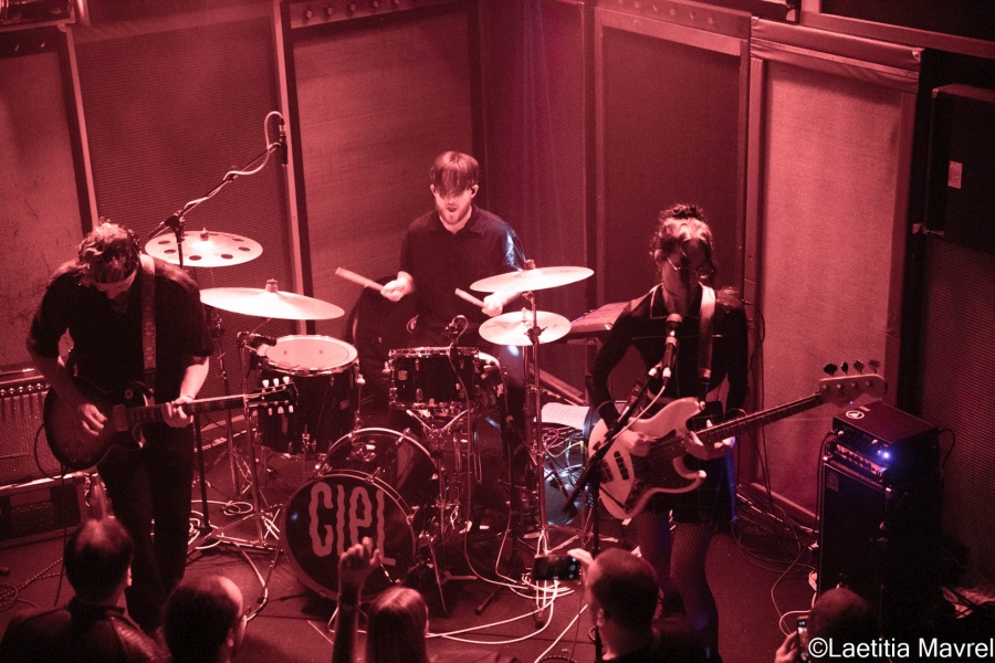 Mais c'est la vie, dans tous les couples il y a des hauts et des bas, alors on brave le froid, la pluie et la dépression pour arriver jusqu'à Bastille et espérer raviver la flamme avec Michelle Hindriks et Tim Spencer. Le duo respectivement à la basse et batterie qui sera pour cette tournée européenne accompagné à la guitare par Nick Bowley, le André Agassi du dream-rock dans sa sublime panoplie bandeau, chaîne en or et chemisette vintage. CIEL, de nouveau trio pour le live, qui rentrent en scène sous les lueurs rougeoyantes du Supersonic Records, ce petit écrin rétro muré de façades d'amplis et d'instruments découpés, aussi découpés que la guitare de Nick Bowley qui mettra tout le premier couplet du concert à bien vouloir fonctionner. Ça part mal mais ça redresse très vite la barre, et on en revient à ce qui manque le plus à ce premier album de la friendzone : une bonne grosse guitare qui tâche.