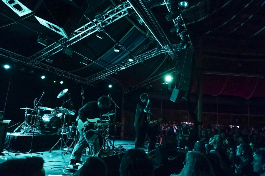 Mr Lovebomb donc, circle pit, message de prévention que « si quelqu'un fait de la merde on lui tapera dans les couilles ! », on change le tom basse tellement ça bombarde, le son est monstrueux entre noise, punk et métal, il se passe trop de choses, pas le temps de tout noter. Un discours inspirant sur les personnes trans dont la batteuse Misha fait partie, « personnes trans, non-binaires, intersexe, c'est notre moment, le monde est à nous ! » suivi par l'apparition d'un drapeau trans sur la scène. Oui, c'est le bordel sur le papier, mais croyez-moi c'était aussi le bordel dans la salle ! Revenons à la musique,